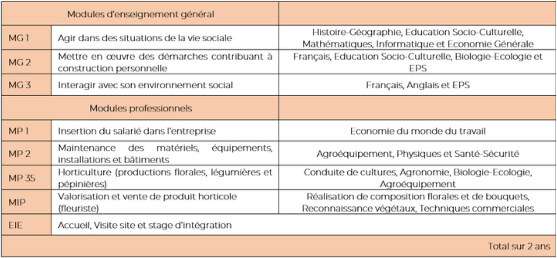 La durée de la formation est de 2 ans soit 840 heures au CFA. Elle peut varier entre 1 et 3 ans en fonction des capacités scolaires et du cursus du-de la jeune.